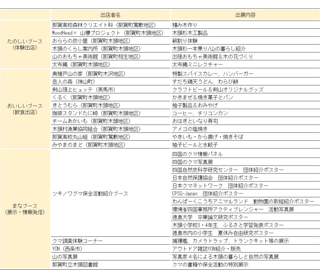 年を重ねるごとに関わる方が増え、ツキノワグマだけでなく、那賀町や剣山系の地域文化や産業も含めた地域の恒例イベントとして定着しつつあると感じています。