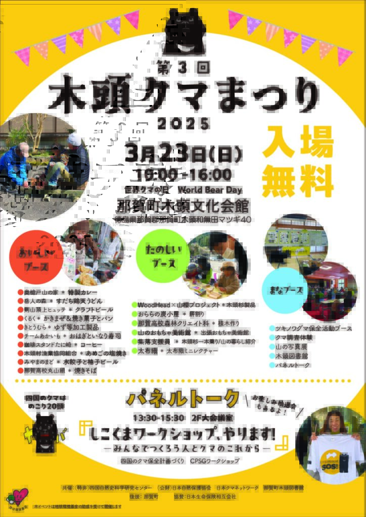 2025年3月23日に、クマの主要な生息地である徳島県那賀町木頭地区にて、「第3回木頭クマ祭り」を開催しました。