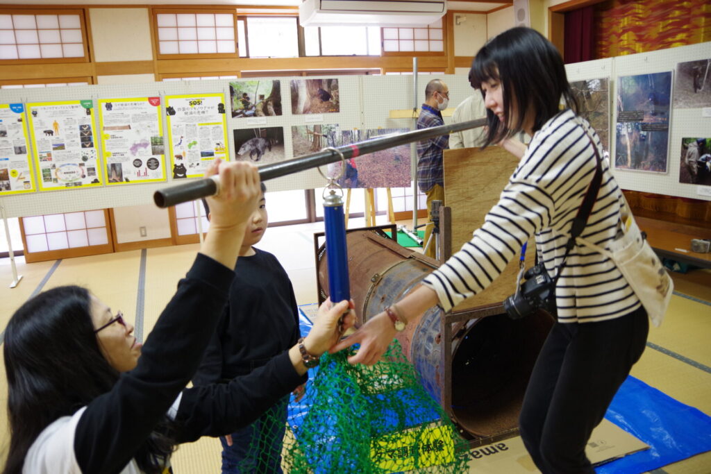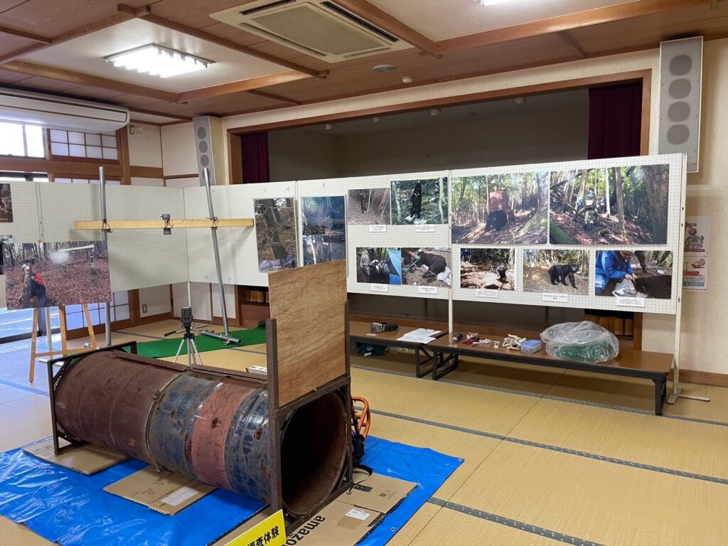 当センターからは、四国のクマの生態や保全活動に関する展示のほか、カメラトラップ調査や捕獲調査の様子を再現し、普段我々が実施する調査活動を紹介しました。