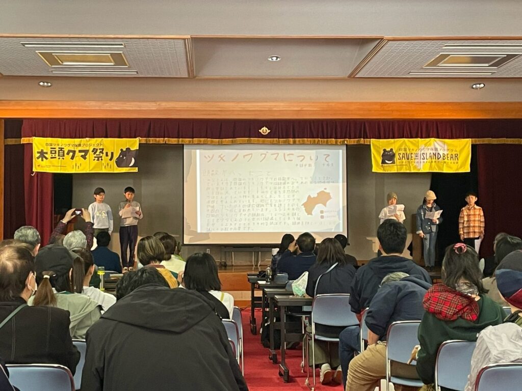 パネルトークの冒頭では、ポスター展示も行った木頭学園の3・4年生が、1年間取り組んできたツキノワグマに関するふるさと学習の成果を発表しました。